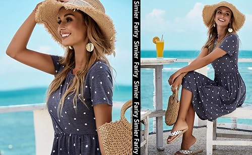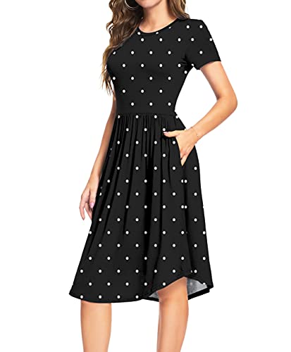 DEARCASE Vestito a Tunica a Maniche Corte da Donna Motivo a Pois Scollo Rotondo Vestito Midi per L'Estate Stile Scampanato Casual con Tasche XL, Nero a Pois