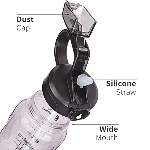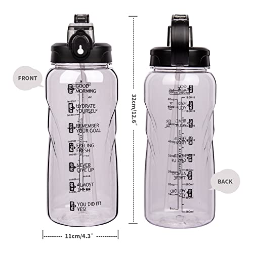 DEARRAY Borraccia 2 litri con Cannuccia, Bottiglia Acqua Sportiva con Indicatore del Tempo Motivazionale, Senza BPA, Senza Perdite, per Palestra, Bici, Campeggio, Escursionismo (Trasparente)