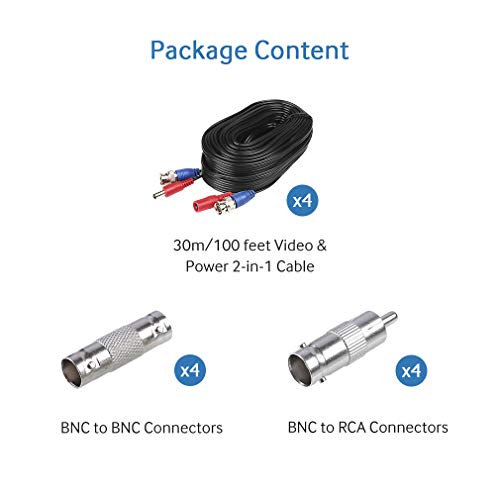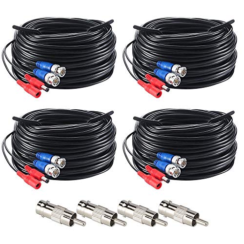 Deatti - Cavo di alimentazione video 2 in 1 con connettori BNC e adattatori RCA per sistema di sicurezza CCTV DVR, confezione da 4, 30 m, colore: nero