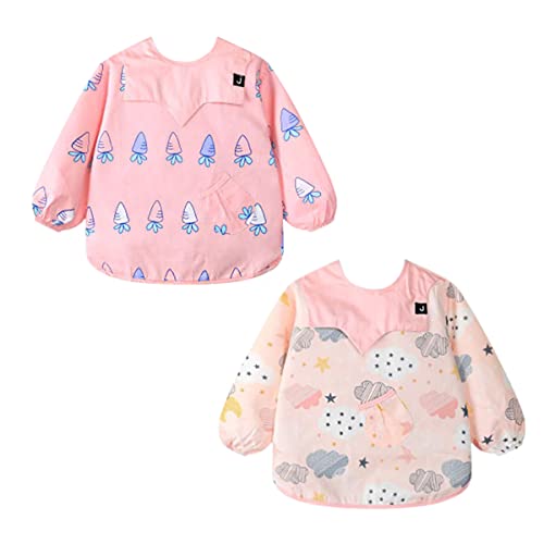 DEBAIJIA Bambino Bavaglini Bambini Grembiule 2 PCS Maniche Lunghe Impermeabile Mangia Leggero Alimentazione Antivegetativo (100-Rosa)