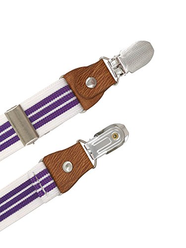 DEBAIJIA Bretelle Bambini Regolabili e Elastici 3 Clip Y Forma 1-6 Anni Bambino Ragazzo Ragazza Pantaloni Accessori Varietà Colori - Viola Bianco a Righe