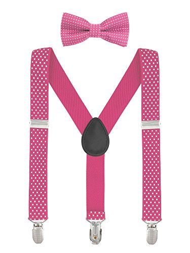 DEBAIJIA Bretelle Papillon Bambini Regolabili e Elastici Pois 3 Clip Y Forma 1-6 Anni Ragazzo Ragazza Accessori Varietà Colori - Neon Rosa