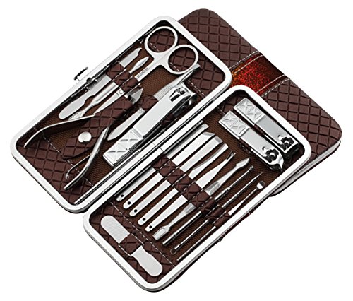 DEBAIJIA 18 Pezzi Tagliaunghie Set Manicure Pedicure Acciaio Inossidabile Bellezza kit Unghie Strumenti Cura dei Piedi - Marrone