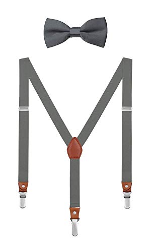 DEBAIJIA Scatola di Boutique Set Bretelle e Papillon per 1-8 Anni Bambino Y Forma 3 Clip 2.5 cm Larghezza Elastiche Regolabili Elegante Grigio scuro
