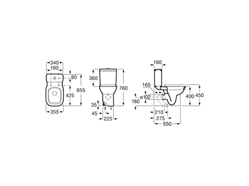 Roca Debba SQUARE A34299B00U - Tazza con doppia uscita per WC a serbatoio basso, bianco, 355 x 655 x 760 mm