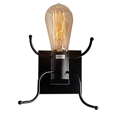 DEBEME Lampada da Parete Creativa Umanoide, Lampada da Comodino Camera da Letto Lampada da Parete retrò Vintage Lampada da Parete Moderna in Metallo, Base E27, Nera (Lampadine Non Incluse)