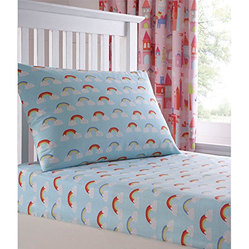 Debenhams Bluezoo “Rainbows” - Set comprensivo di lenzuolo con angoli e federe, per la cameretta dei bambini, motivo con arcobaleni, colore: bianco, 50% cotone/50% poliestere/ in cotone/poliestere, White, Singolo