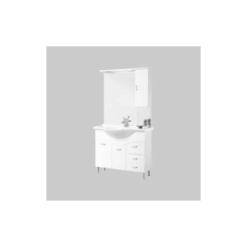 Illuminazione a led. Dimensioni: H 187 x L 105 x P 34 (P 50 completa di consolle). Per la composizione completa, ordinare: 7187602 (Base), 7187604 (Specchiera), 7187606 (Lavabo in ceramica) Debora 105 base cm 105x51x83h Accessori e mobili bagno