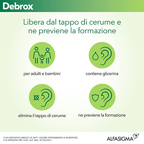 DEBROX Gocce Auricolari 15 ml, Gocce Orecchie Predosate, Liberano l'Orecchio dal Tappo di Cerume, Ideale per Bambini e Adulti, Ideale per la Pulizia Orecchie