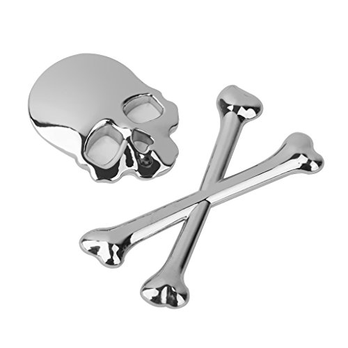 Decalcomania per Auto A Forma di Teschio con Disegno A Croce, Adesivo in Metallo Cromato 3D Emblema Adesivo Autoadesivo, Argento