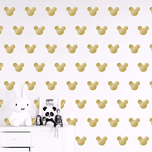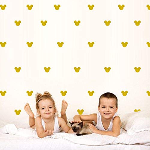 24 decalcomanie da parete per cameretta dei bambini, in vinile, con testa di Topolino, per cameretta dei bambini, per camera da letto, decorazione da parete per bambini (oro)