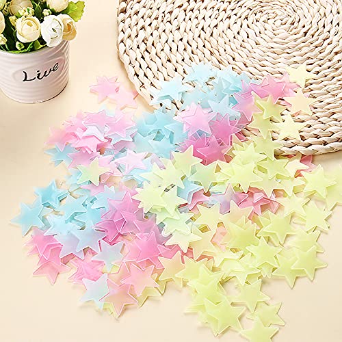 Decalcomanie Da Parete Fluorescenti 100 Pcs Decorazione Adesiva Stella 3D Soffitto Decalcomanie Da Muro Stella Camera Da Letto Adesivo Stelle Luminose Adesivo Interruttore Della Luce (giallo)