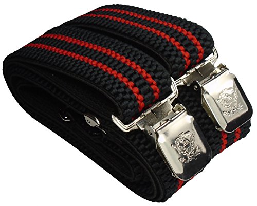 Decalen Bretelle Uomo Donna X Forma Elastici Registrabili Clip molto forti Colori Nero Blu Rosso (Nero Rosso)