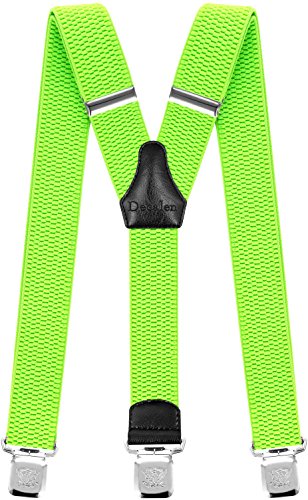 Decalen Bretelle Uomo Eleganti Extra Forte Clip Taglia Unica per Uomini e Donne Grandi e alti Larghezza Regolabile di 4 cm e Forma a Y Elastica (Verde Neon)