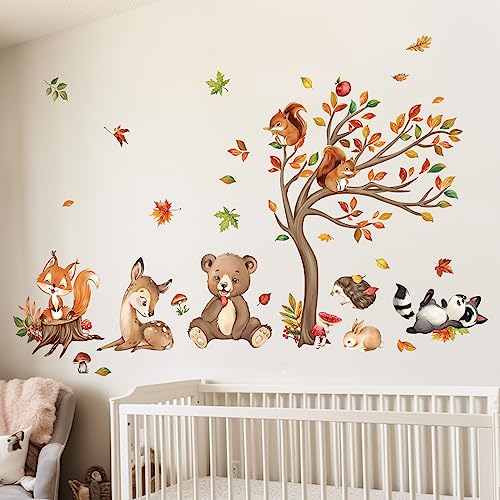 Decalmile Adesivi Murali Animali del Bosco Albero Adesivi da Parete Orso Cervo Volpe Foresta Decorazione Murale Asilo Nido Camerette Bambini Camera da Letto