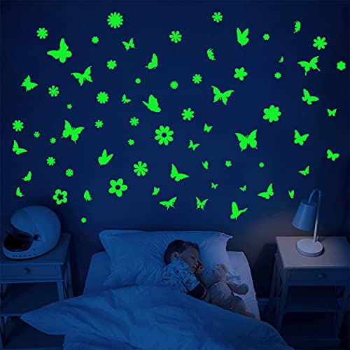 Decalmile Adesivi Murali Luminosi Farfalla Floreale Adesivi da Parete Fluorescenti Fiore Decorazione Murale Camerette Bambini Soffitto Camera da Letto