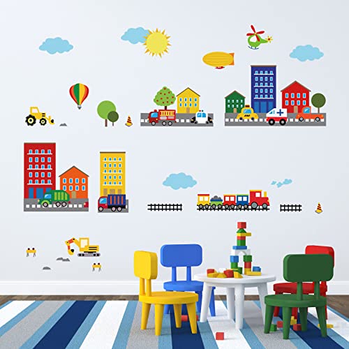Decalmile Adesivi da Parete Bambini Trasporto Adesivi Murali Auto Mongolfiera Ragazzi Asilo Nido Soggiorno Camera da Letto Aula Decorazione Murale