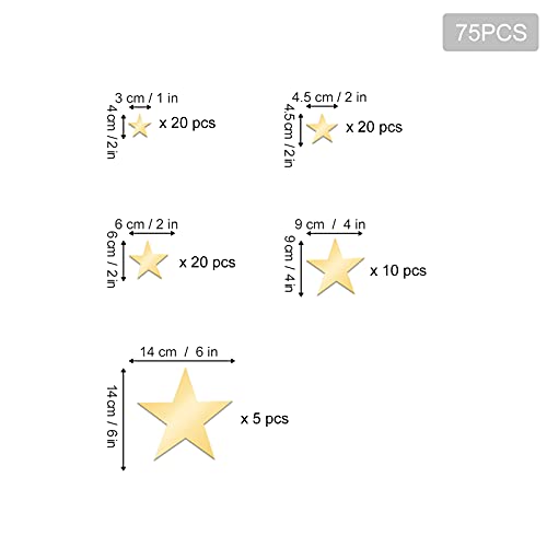Decalmile 75 Pezzi Adesivi Murali Specchio Acrilico 3D Adesivi da Parete Stelle Oro Decorazione Murale Casa Camera da Letto Soggiorno