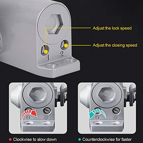 【2 Valvole regolabile】Due valvole di regolazione indipendenti controllano le velocità di spazzamento e di bloccaggio, Regolate velocemente o lentamente la velocità. Può chiudere la porta automaticamente e silenziosamente. Migliorerà la qualità della tua vita. Non devi più gridare "chiudi la porta" più o meno.