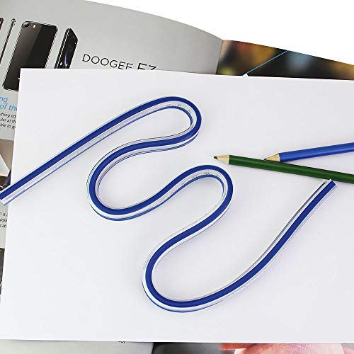 DECARETA Curvilinee Deformabile Curva Flessibile 60 cm Righello Flessibile per Disegnare Curve, Tecnici, Abbigliamento Disegni Artistici (Blu)