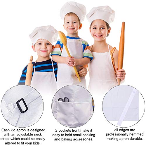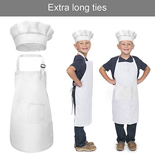 DECARETA 2 Set di Grembiule e Cappello di Cuoco per Bambino 60 * 45cm Grembiuli in Cotone Regolabile con 2 Tasche per Ragazze Ragazzi (Bianco)