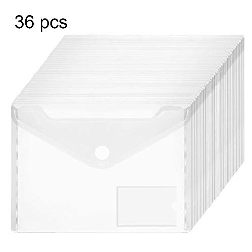 DECARETA 36 Pezzi Buste A5 Trasparenti con Bottone, Impermeabile Cartelline Trasparenti A5 Buste Portadocumenti Plastica per Scuola e Ufficio, Fattura, Documenti, Foto, A5 Size