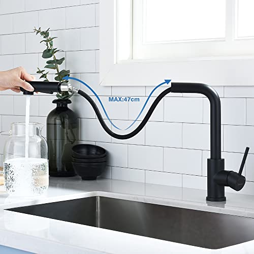 Decaura rubinetto lavello cucina con doccetta estraibile 2 funzioni, miscelatore cucina con bocca alta girevole a 360 °, Nero