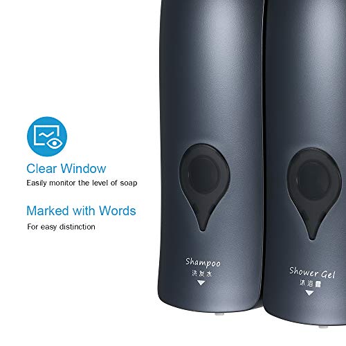 Decdeal 1 300ml x 2 Dispenser di Sapone Doppio, Dispenser di Sapone Liquido per Doccia Bagno Dispenser di Shampoo Bagnoschiuma (Grigio)
