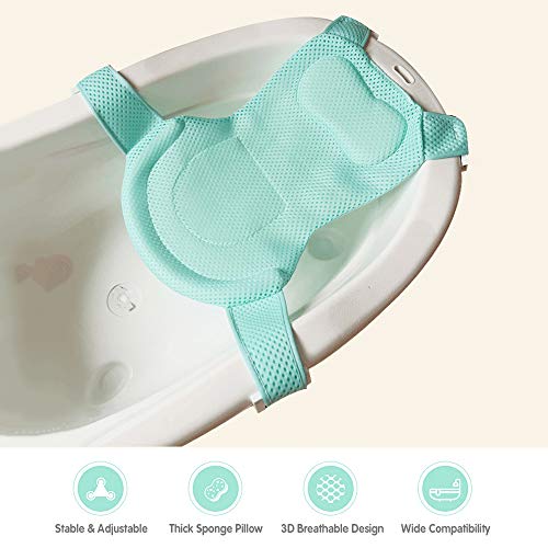 Decdeal Rete da Bagno per Bambini Seggiolino da Bagno per Bambini Antiscivolo Tessuto Traspirante 4 Fibbie Supporto per Il Bagno Imbracatura per Vasca Regolabile per 0-12 Mesi Neonati