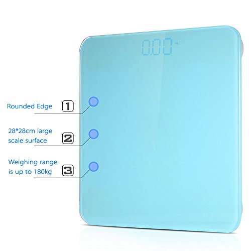 Azzeramento automatico fornisce letture immediate. Il vetro temperato è graffiatura e frantumare-resistente, misura dovunque nella vostra stanza da bagno o casa.