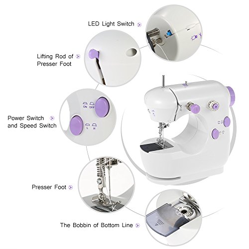 Decdeal Mini-Multifunzionale Macchina da Cucire Elettrico Regolabile con Piede a Pedale LED Light AC100-240V
