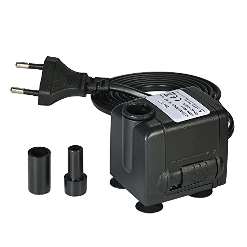 Decdeal Pompe per fontane Pompe d'acqua per acquario pompa acqua pompe per laghetti da giardino con 2 ugelli(450L/ H 6W)
