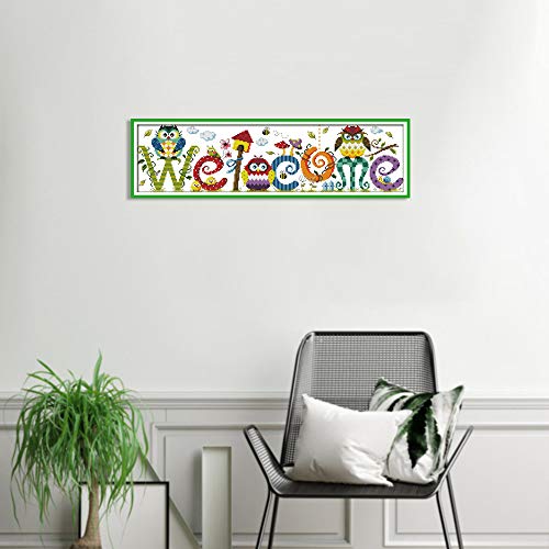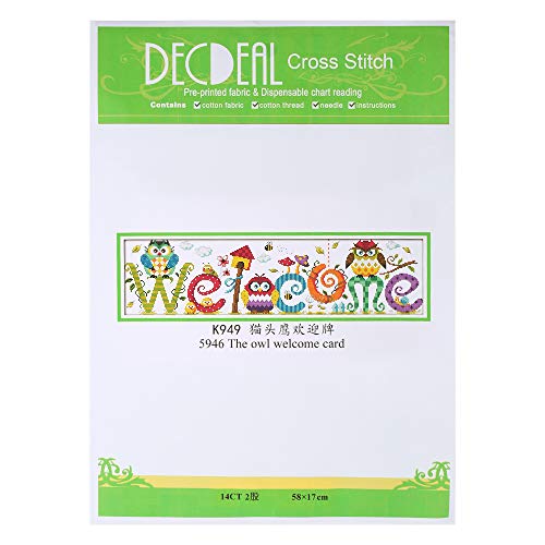 Decdeal Kit Punto Croce,22,8 * 6,7 Pollici The Owl Welcome Card Pattern con Prestampato 14CT Canvas Cross-Stitching,Non Sbiadito,Needlework Decorazione della Parete di Casa