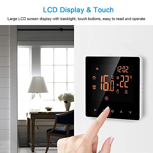Decdeal Termostato Intelligente Wi-Fi - Regolatore Digitale Della Temperatura,Controllo APP, Display LCD Toccare Schermo, Cronotermostato Riscaldamento a Pavimento Elettrico Programmabile,16A