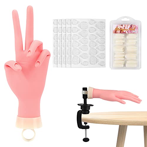 Deciniee Mano Pratica per Unghie Finte,Mani Pratiche in Silicone e 100 Formazione Punte per Unghie e 120 Adesivi per Colla Set,Strumenti Professionali per Nail Art Mani Finte Flessibili Regolabili
