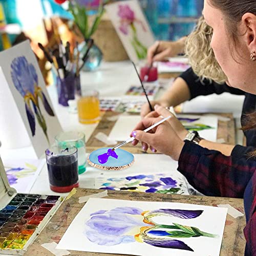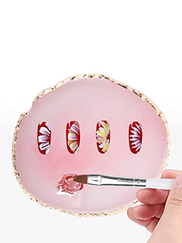 Design Squisito: Il diametro di questa tavola di colori misti è di circa 10 cm. Cerchi irregolari, design con bordo dorato e colori vivaci di blu e rosa lo rendono più alla moda e bello. Due penne a tavolozza di colori, comode per mescolare qualsiasi vernice, facili da usare.