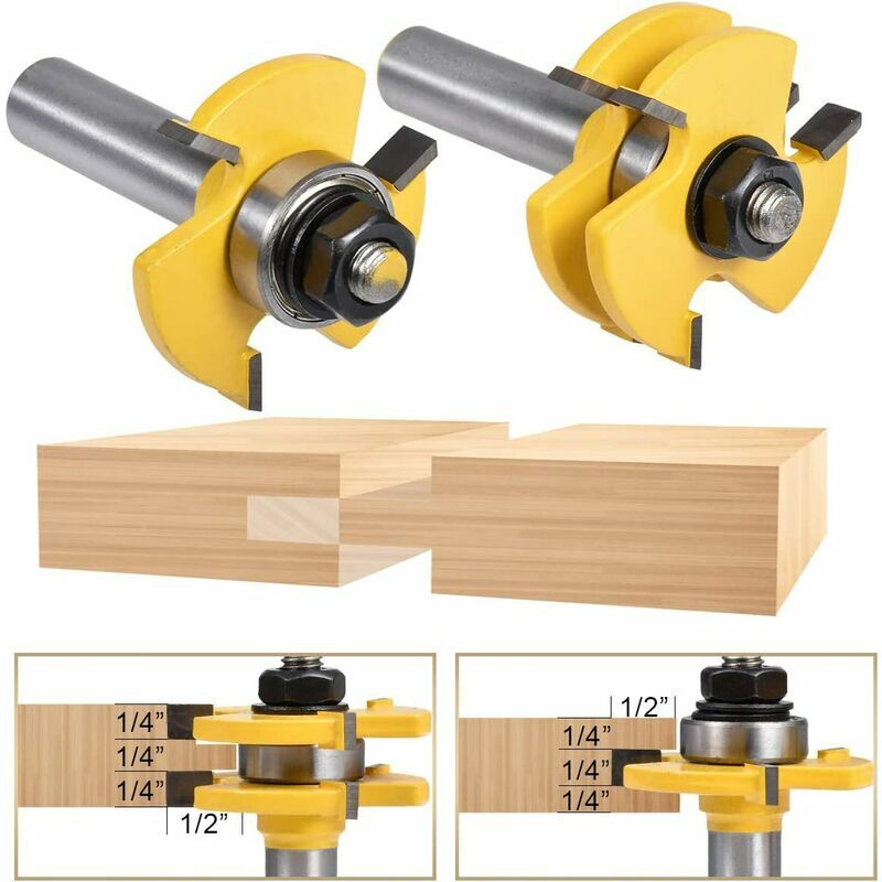 INTRODUZIONE:: Set Rain Cutter e linguette a forma di T a 3 denti. Diametro gambo: 1/2'' Larghezza dente: 1/4'' Profondità dente: 1/2''. Fornisci maggiore praticità per la tua lavorazione quotidiana del legno. Tagliare in una larghezza del dente liscia che produce pulito, senza crepe. . MATERIALE: Le nostre frese sono realizzate in solido acciaio temprato e carburo di grana C3. (Il carburo di grado C3 è il grado più alto utilizzato nell'industria delle frese). Il design preciso del prodotto crea tagli lisci e dettagliati adatti a tutti i livelli di complessità. . DESIGN PERFETTO:: Corpo in acciaio temprato con design anti-rinculo. Tolleranza di bilanciamento di +/- 0,003 (consentendo un funzionamento regolare a regimi molto elevati). 3 punte in metallo duro C3 - Il grado di micrograna offre la massima resistenza e durata. MDF, truciolare, compensato, pannello, legno tenero, legno duro, ecc. Adatto per la lavorazione artigianale di un cassetto o di qualsiasi altra lavorazione del