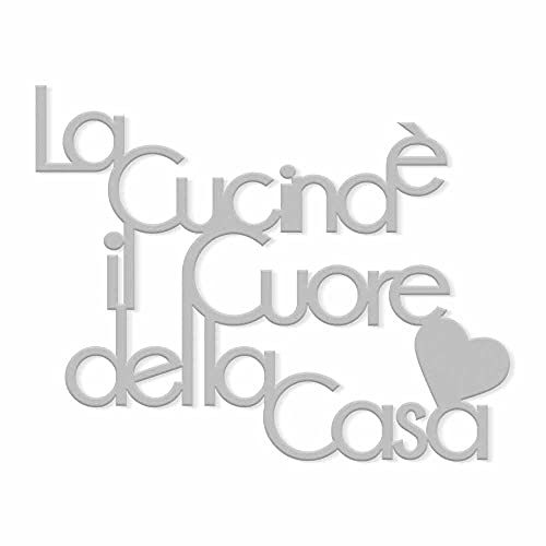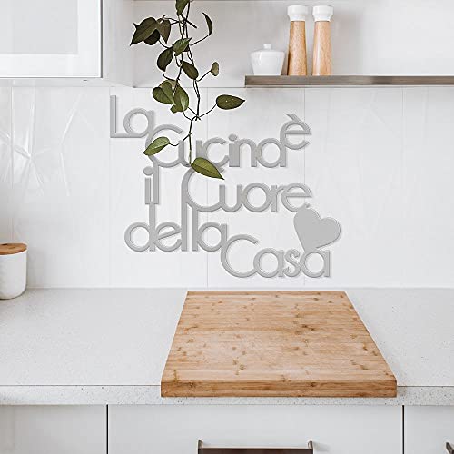 Declea Home Decor, Scritta frase in legno da appendere La cucina è il cuore della casa, Decorazione Murale da appendere alla parete ideale per la per cucina, Grigio Medio, 60X45 cm
