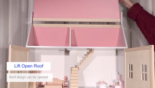 DecoBay Casa delle bambole in legno a 3 piani e mobili per camera da letto, cucina, bagno e soggiorno (casa delle bambole a 3 piani e 25 mobili)