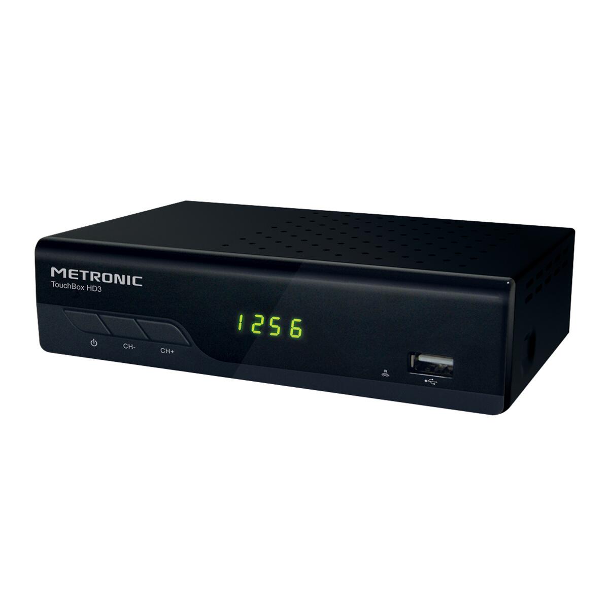 1 SCART, porta USB, HDMI, dimensioni L 18,5 x H 19 x P 5,5 cm. Consente di tutti i canali satellitari in chiaro (FTA) in definizione standard e in HD.. Grazie alla sua porta USB, questo decoder consente di gegistrare su un Hard Disk esterno le trasmissioni dei canali satellitari free to air. Mettere in pausa una trasmissione e di riavviarla quando si desidera (funzione TIME SHIFT). Leggere il contenuto multimediale salvato su una chiave USB o su un Hard Disk esterno