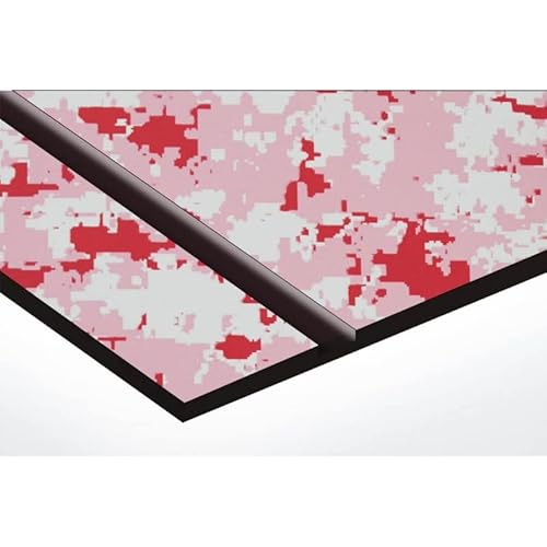 Targhetta per citofono o campanello, colore rosa mimetico e lettere nere, in materiale PVC, resistente ai raggi UV e agli agenti atmosferici.