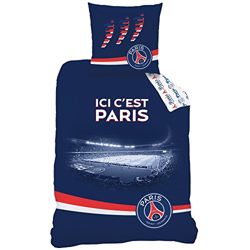 Decokids Parure da letto (3 pezzi), copripiumino, federa, lenzuolo con angoli, stampa PSG Parc des Princes