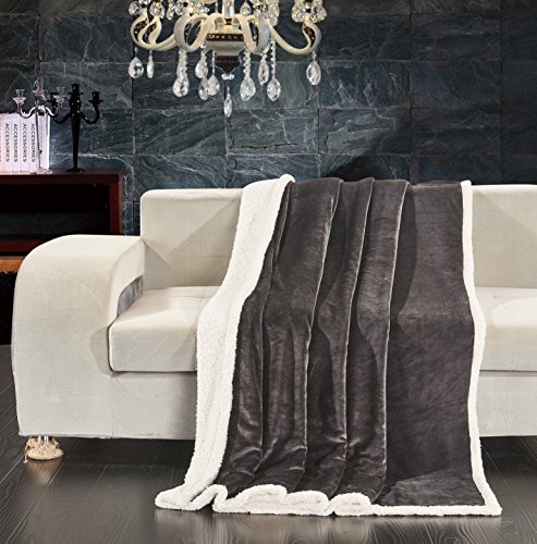 DecoKing Coperta in Microfibra Due Lati Morbida e Soffice Sherpa Pelliccia d'Agnello Stile Scandinavo Teddy Grigio Scuro Antracite