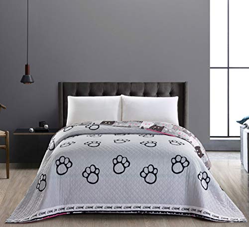 DecoKing copriletto trapuntato in microfibra, double-face, trapunta, facile da pulire, grigio acciaio antracite grafite nero bianco rosa gatti Cats' Invasion., Microfibra, Cats' Invasion, 200 x 220 cm