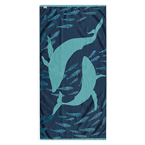 DecoKing Telo mare grande 90 x 180 cm cotone spugna velluto asciugamano blu scuro bianco Dolphin