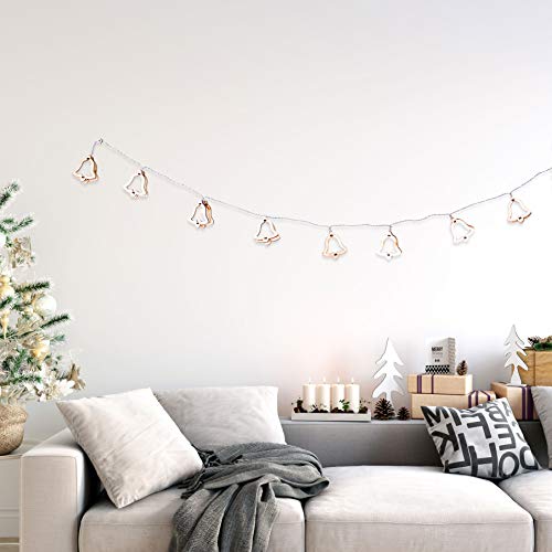 DecoKing 10 luci a LED con timer, campane in legno, bianco caldo, statico, a batteria, in legno