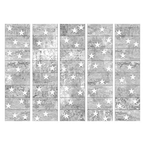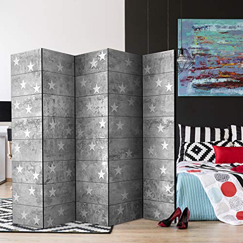 Decomonkey il paravento unilaterale XXL Calcestruzzo 225x172 cm 5 pezzi Separatore su tela Pieghevole un design eccezionale Separé Divisorio Interno Decorazioni Parete Stella Loft grigio bianco