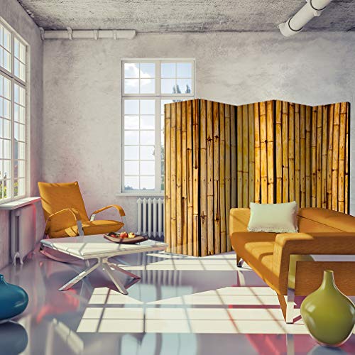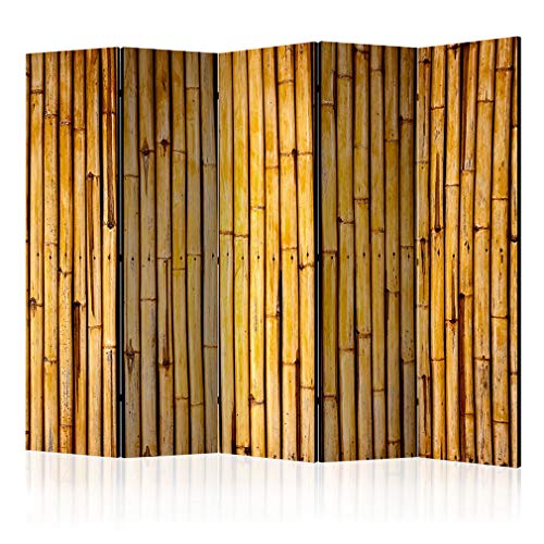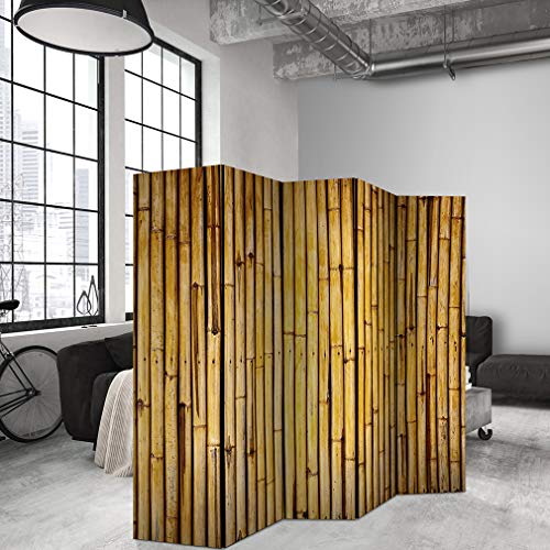 Decomonkey il paravento unilaterale XXL Effetto Legno 225x172 cm 5 pezzi Separatore su tela Pieghevole un design eccezionale Separé Divisorio Interno Decorazioni Marrone Tavole Wood Bambù