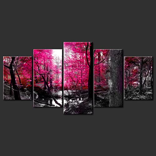 Decomonkey quadro acustico moderno Bosco 200x100 cm 5 pezzi quadro su tela pannello unico quadri XXL per le pareti isolamento isolante silenzio Natura Contrasto Paesaggio Astratto nero rosa