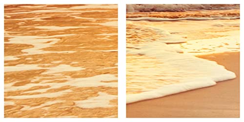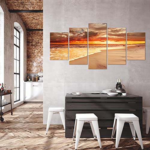 Decomonkey Quadro Stampa su Tela moderno Mare 100x50 cm 5 pezzi Murale Fotografia Immagini Decorazione da parete Grafica Paesaggio Spiaggia Tramonto Nuvole Sabbia Onde arancia